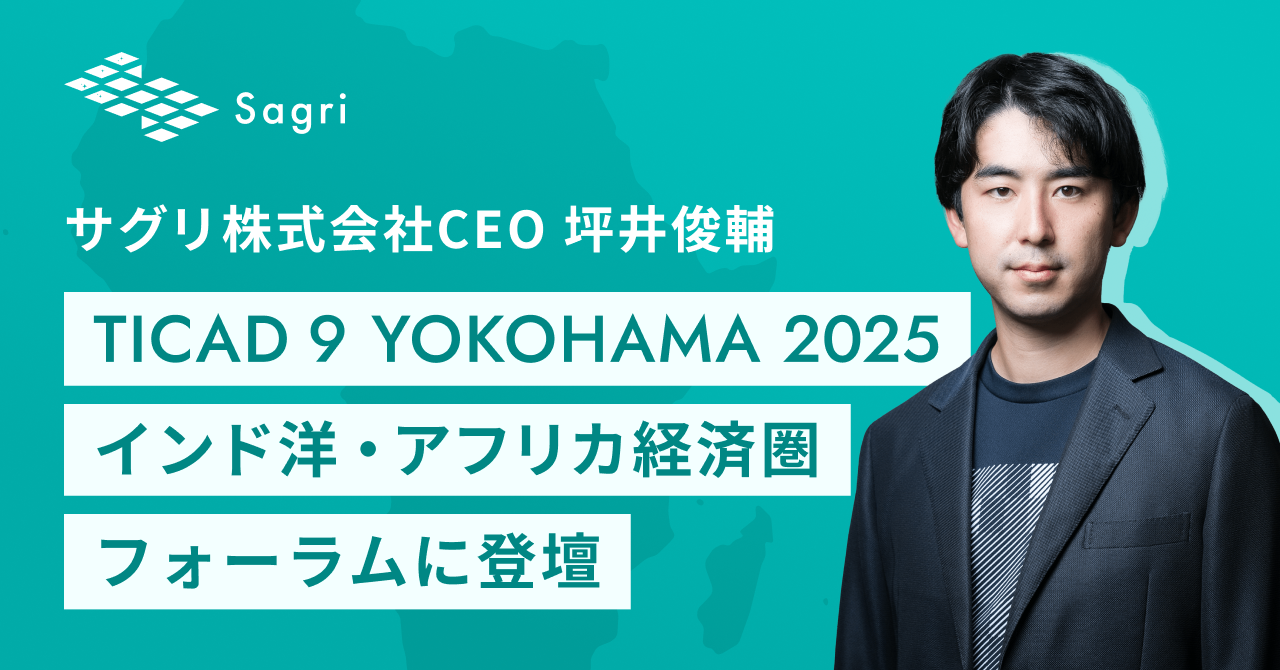 衛星データとAIを活用し、農業と環境の課題解決を目指すサグリ株式会社(本社:兵庫県丹波市、代表取締役CEO:坪井俊輔、以下「サグリ」)は、2025年8月20日に第9回アフリカ開発会議(TICAD9)に併せて開催される 「インド洋・アフリカ経済圏フォーラム」(主催:NIKKEI、共催:経済産業省、外務省) において、弊社代表取締役CEOの坪井俊輔が登壇いたします。