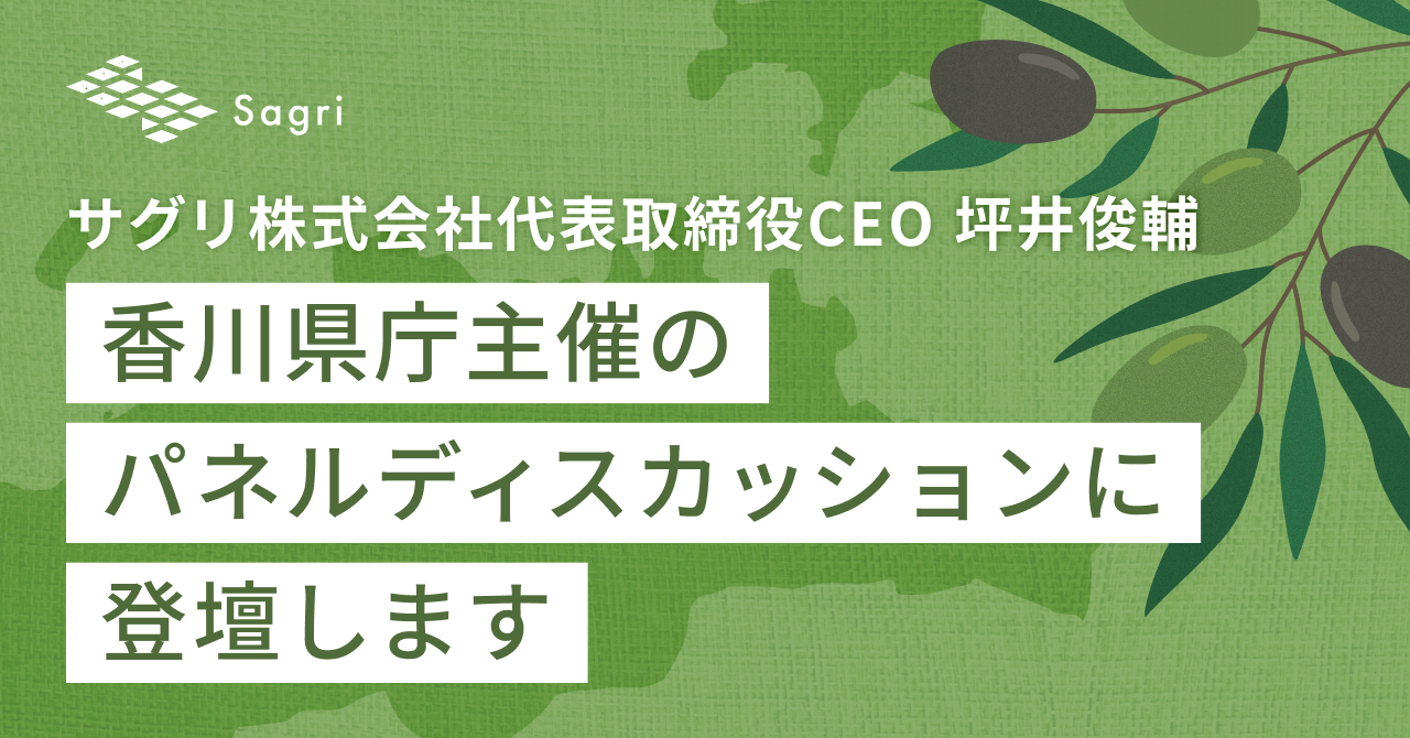 サグリ株式会社代表取締役CEO 坪井俊輔、 香川県庁主催のパネルディスカッションに登壇します