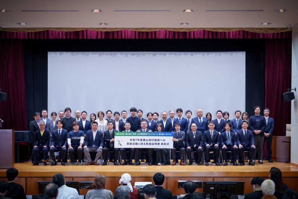 今回、令和8年3月13日(金)に山本農林水産大臣政務官より取組証明書が授与され、その後「農林水産省『農山漁村』経済・生活環境創生プラットフォーム 第3回シンポジウム(以下「シンポジウム」)」にて公表・表彰されました。